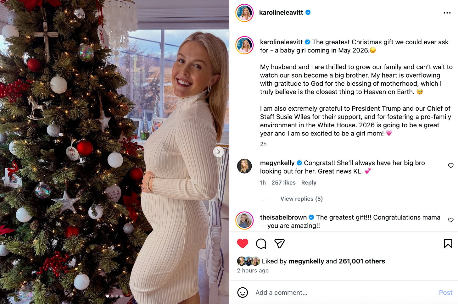 “2026 is going to be a great year,” Leavitt said in her Instagram announcment. “I am so excited to be a girl mom!”