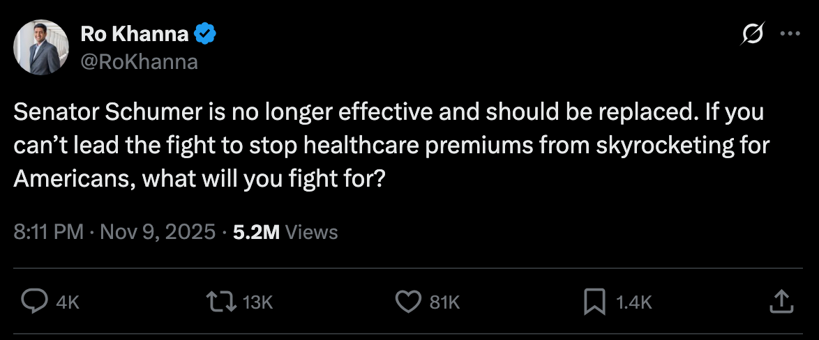 Several Democrats in the House called for Schumer to step down, such as Rep. Ro Khanna, D-Calif., who said, “Schumer is no longer effective.”